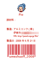 ぴお > そのへんは悩ましかったのですが…ゴロがよかったんで( ̄▽ ̄)ステッカーってデータでいいの?新たに印刷するとなると一人分はもったいないなあ なんか他にもできないかな。 (08/06/24 18:52)